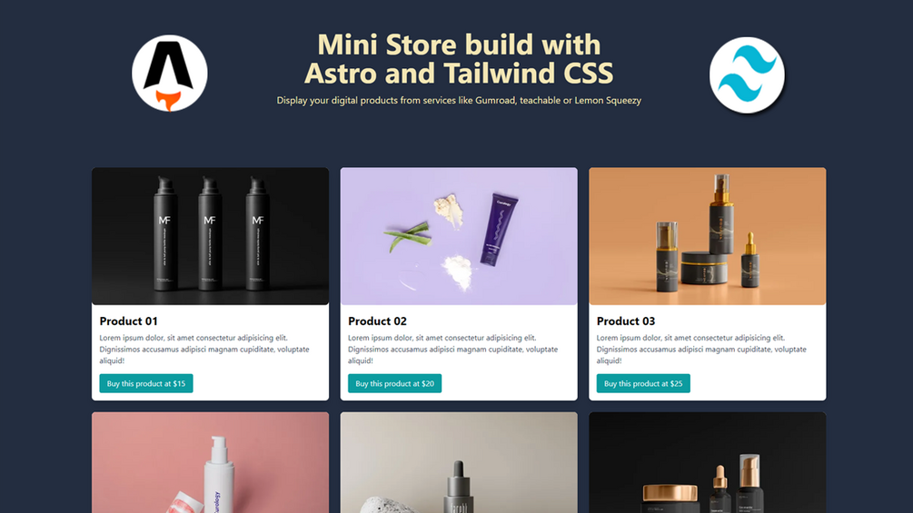 Mini Store is a responsive store display template built with Astro and Tailwind CSS.