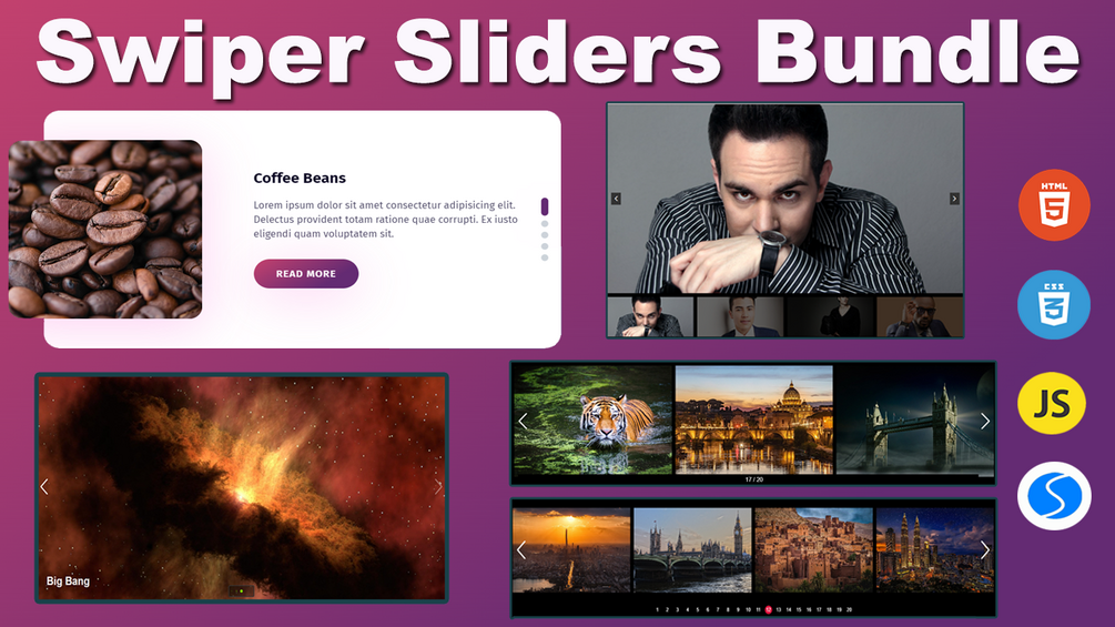 Swiper sliders bundle is a collection of various sorts of sliders built with HTML5, CSS3 and JavaScript.
